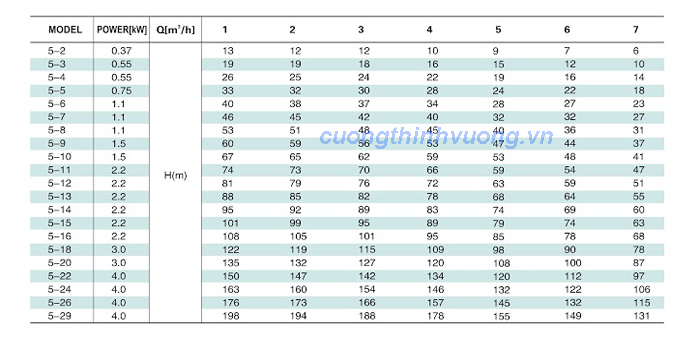 Biểu đồ cột áp của Máy bơm nước Leo LVS 10
