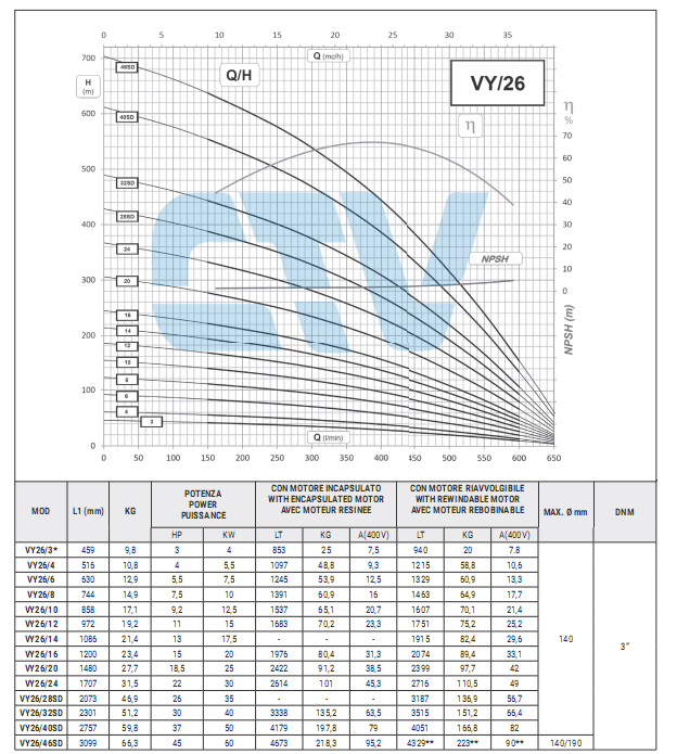 Máy bơm hỏa tiễn giếng khoan STAC 6 Inch Model STAC VY/26/6