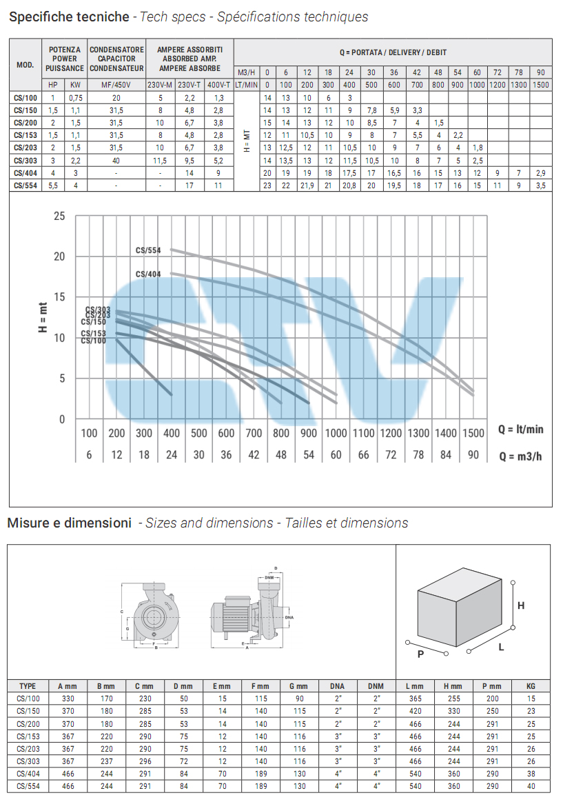 Bảng tra thông số lưu lượng, cột áp máy bơm STAC CS
