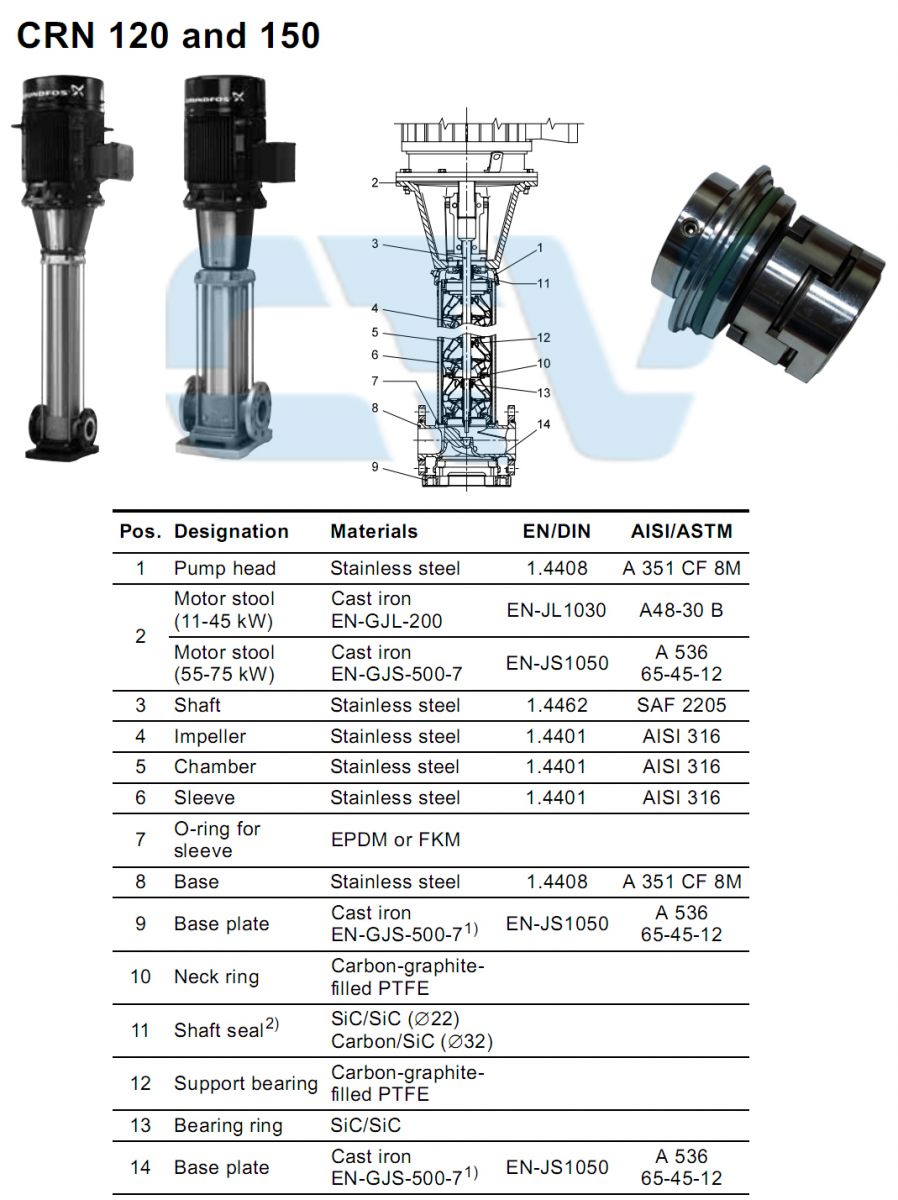 Thông số kỹ thuật phớt trục đứng Grundfos CR: