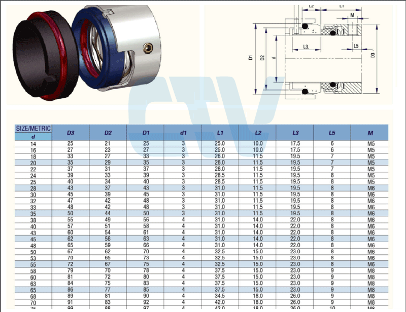 Bảng tra thông số kích thước phớt bơm nước công nghiệp M7N