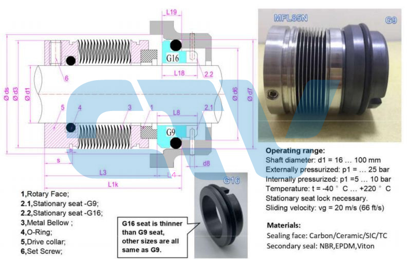 Phớt máy bơm nước type MFL85N, phớt bơm hóa chất